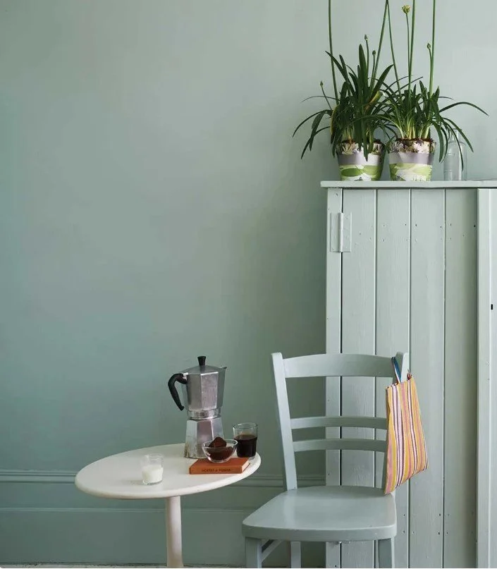 Light blues or greens to create a fresh, airy feel. Little Green’s ‘celestial blue’, or Farrow and Ball’s ‘theresa’s green’, both offer beautiful starting points.