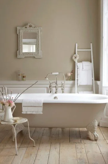 Warm neutrals such as beige or taupe to maintain a cozy feel. A great place to start is ‘school house white’ from Farrow Ball, or try ‘slacked lime’, ‘gauze’ and ‘french pale grey’ from Little Green.